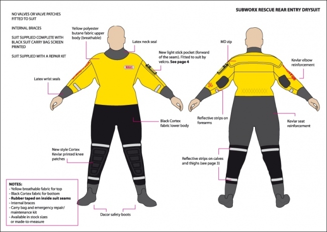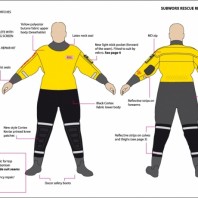 Dit droogpak is speciaal ontworpen voor de firma W.R.E.T. Zij zijn gespecialiseerd in toelevering van oppervlakteredding materialen, en het geven van trainingen.
